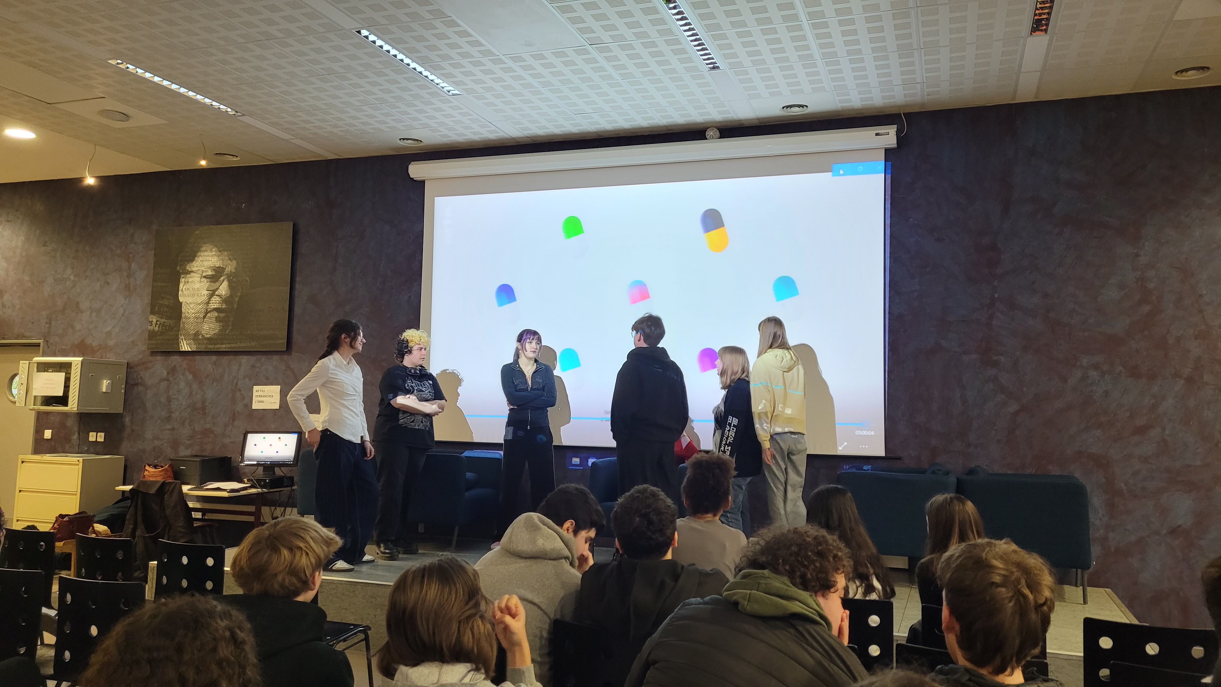 Dans un premier temps, une vidéo de la série Dopamine sur TikTok leur a été présentée. Celle-ci a servi de point de départ à un débat avec les élèves autour des pratiques numériques, des risques liés à Internet, mais aussi des bons réflexes à adopter pour une utilisation responsable et respectueuse des réseaux sociaux.