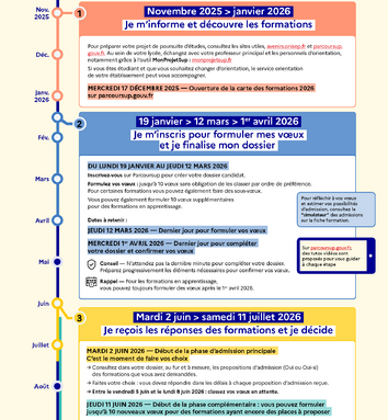 Par Benjamin Arino, publié le mercredi 22 octobre 2025 10:07 - Mis à jour le mercredi 22 octobre 2025 10:07L'infographie du calendrier Parcoursup 2026 permet d'illustrer les grandes lignes de la procédure. -